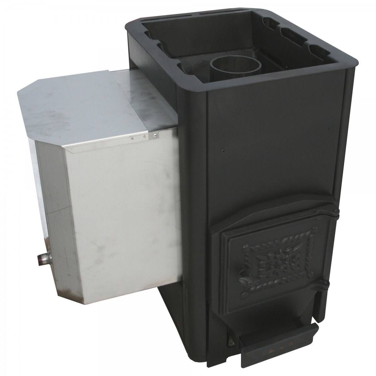 Печь для бани Варвара "Мини" навесная укороченная топка представляет собой печь для бань и саун со встроенным баком для нагрева воды. Для удобства размещения бак может располагаться как справа, так и слева. Бак навешивается в специальный карман (либо справа, либо слева) на боковой стенке печи. Нагрев воды в баке осуществляется за счет передачи тепла от одной из стенок печи. Навесной бак всегда можно снять и промыть, ведь не секрет, что на внутренней поверхности бака будет образовываться налет. Имеет компактные размеры, что дает ей возможность быть установленной в небольших помещениях. В печи сохранена система двойной конвекции, что позволяет ей, быстро прогревать парилку и каменку печи.