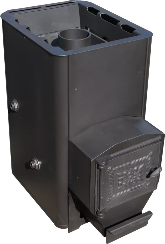 Печь для бани Варвара "Мини" с контуром представляет собой печь для бань и саун со встроенным теплообменником, который осуществляет нагрев воды в баке находящимся на значительном расстоянии от печи. Теплообменник в данной модели находится непосредственно в топке печи и имеет прямой контакт с огнем, что позволяет ему за короткое время нагревать воду в баке.