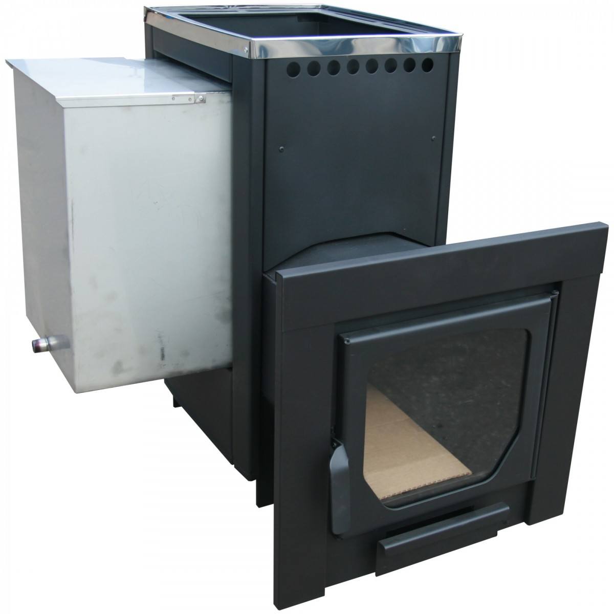 Печь для бани Варвара "Паленица" навесная панорамная дверь удлиненная топка с баком 55 л для парной объёмом от 12 до 24 м3