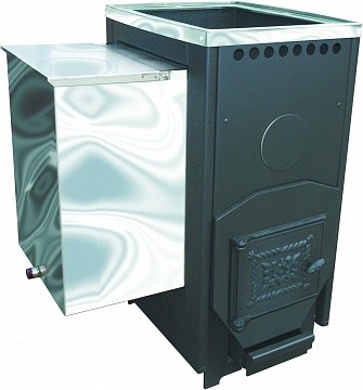 Печь для бани Варвара "Паленица" навесная укороченная топка представляет собой печь для бань и саун со встроенным баком для нагрева воды. Для удобства размещения бак может располагаться как справа, так и слева. Бак навешивается в специальный карман (либо справа, либо слева) на боковой стенке печи. Нагрев воды в баке осуществляется за счет передачи тепла от одной из стенок печи. Навесной бак всегда можно снять и промыть, ведь не секрет, что на внутренней поверхности бака будет образовываться налет.