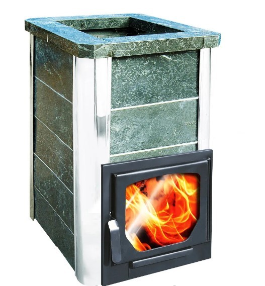 Печь для бани Варвара "Сказка" облицовка талькохлорит укороченная топка для парной объёмом от 12 до 24 м3