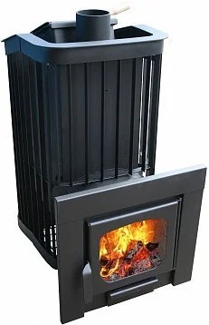 Печь для бани Варвара "Терма Каменка Мини" с контуром панорамная с сетчатым кожухом для закладки камнем и закрытой каменкой. Камни в данной модели закладывается в специальный карман с дверцей, находящийся внутри печи. При топке, камень в данной модели нагревается до более высокой температуры, в отличии от моделей с открытой каменкой. Такая модификация дает возможность получить мягкий мелкодисперсный пар. Также имеется сетчатый кожух для закладки камней снаружи, для большей теплоотдачи и для уменьшения инфракрасных лучей от металла печи. Общий объем закладываемых камней до 160 кг.