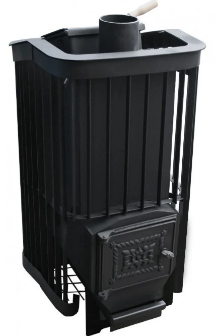 Печь для бани Варвара "Терма Каменка Мини" с контуром укороченная топка с сетчатым кожухом для закладки камнем и закрытой каменкой. Камни в данной модели закладывается в специальный карман с дверцей, находящийся внутри печи. При топке, камень в данной модели нагревается до более высокой температуры, в отличии от моделей с открытой каменкой. Такая модификация дает возможность получить мягкий мелкодисперсный пар. Также имеется сетчатый кожух для закладки камней снаружи, для большей теплоотдачи и для уменьшения инфракрасных лучей от металла печи. Общий объем закладываемых камней до 160 кг.
