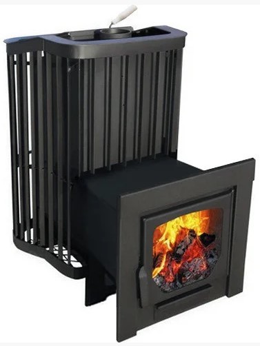 Печь для бани Варвара "Терма Каменка" с контуром панорамная дверь удлинённая топка с сетчатым кожухом для закладки камней и закрытой каменкой. Камни в данной модели закладывается в специальный карман с дверцей, находящийся внутри печи. При топке, камень в данной модели нагревается до более высокой температуры, в отличии от моделей с открытой каменкой. Такая модификация дает возможность получить мягкий мелкодисперсный пар. Также имеется сетчатый кожух для закладки камней снаружи, для большей теплоотдачи и для уменьшения инфракрасных лучей от металла печи.