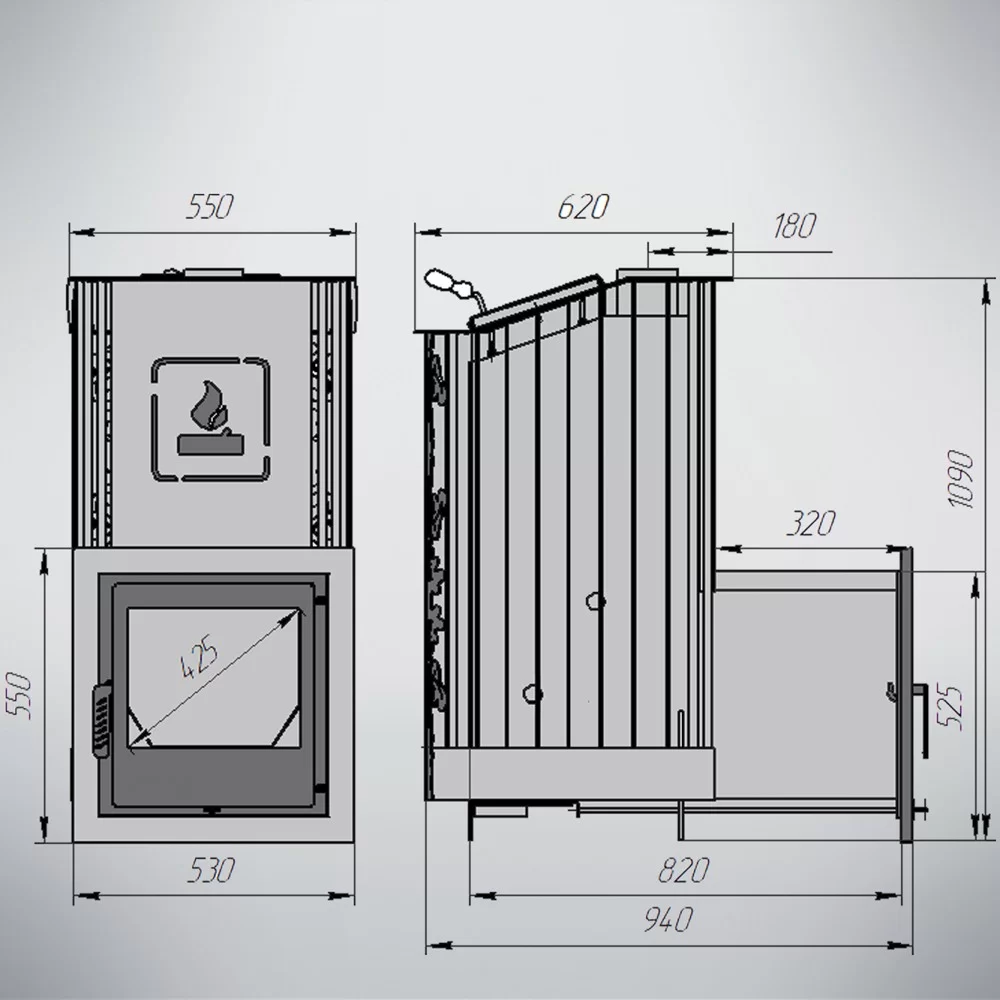Печь для бани Варвара "Терма Каменка" удлиненная топка для парной объёмом от 12 до 24 м3