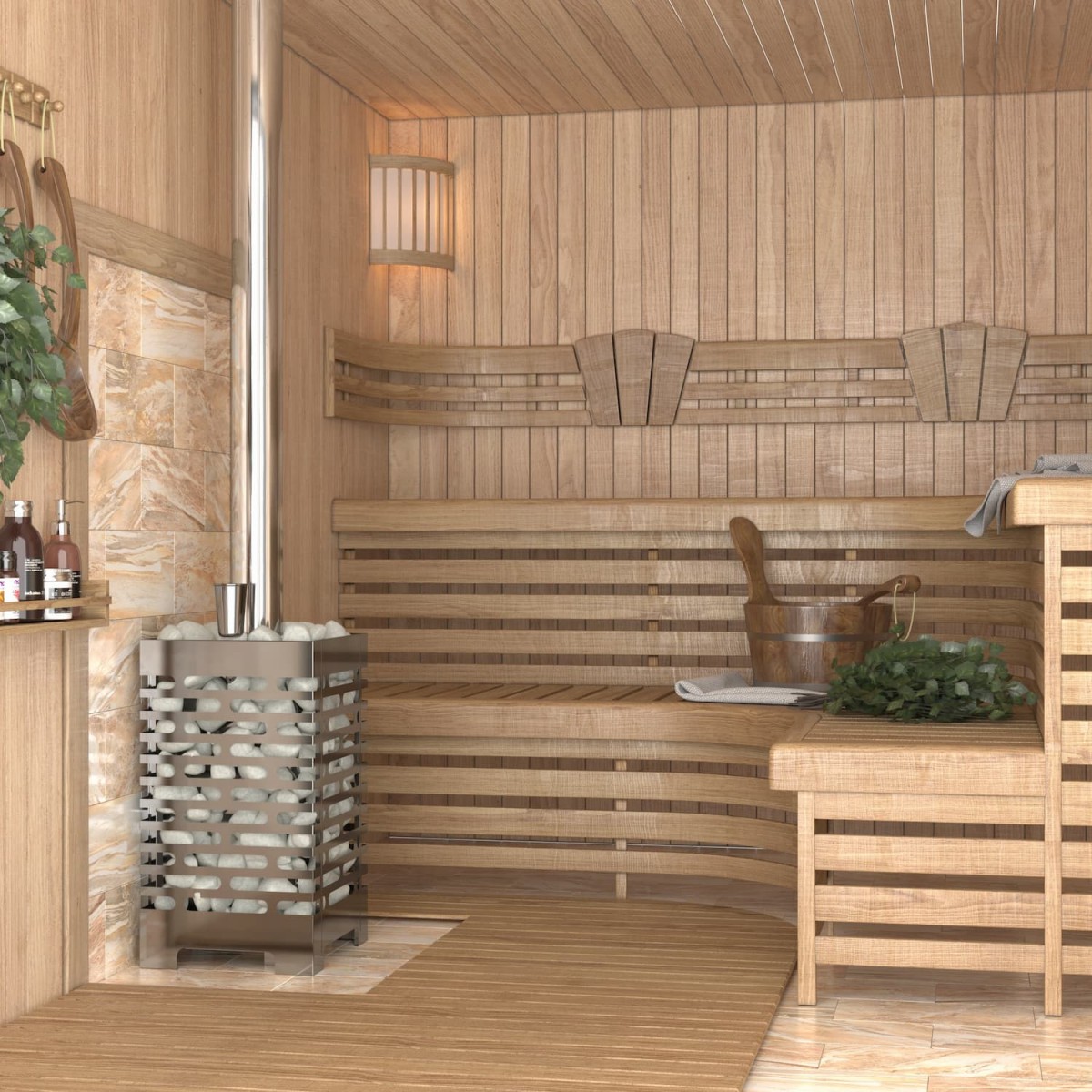 Банная печь ASTON 12 INOX с глухой дверцей мощность 12 кВт, для парной 6-14 м3, стальная топка, гарантия 1 год.