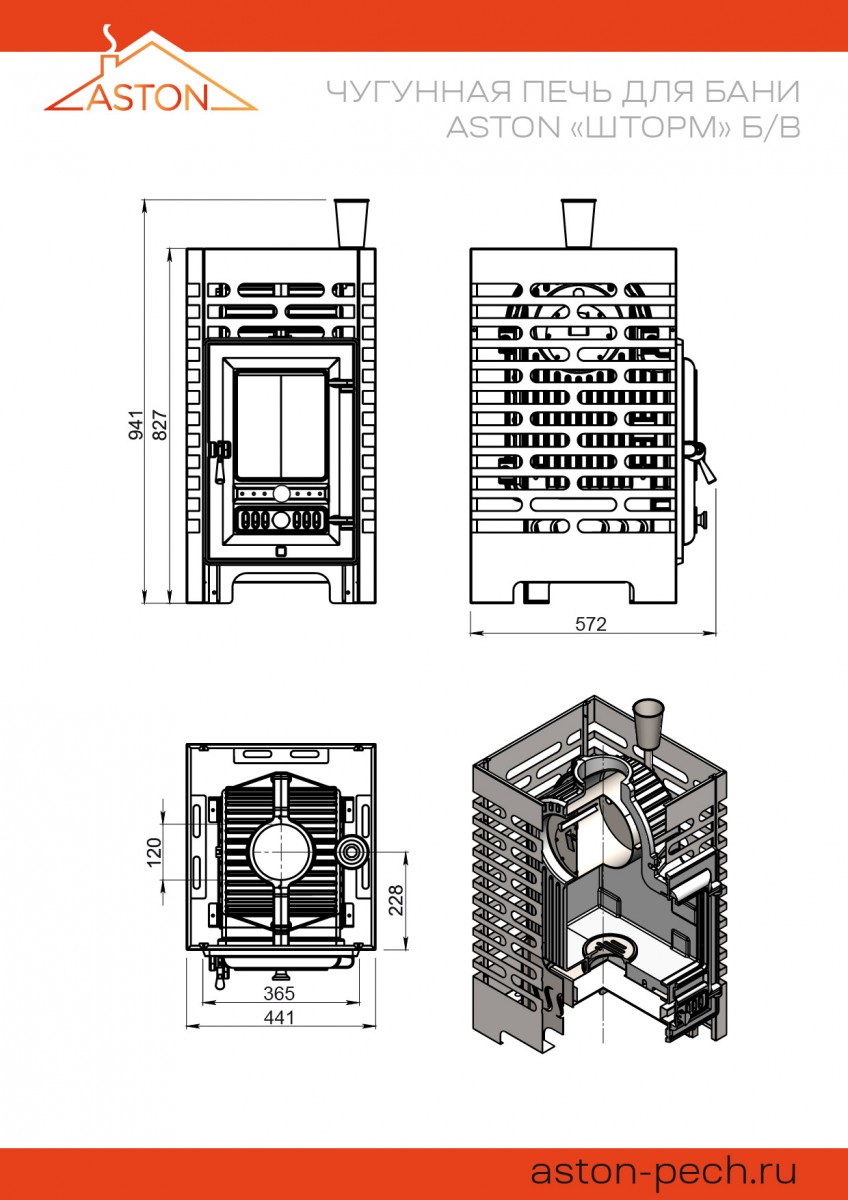 Банные печи ASTON Шторм б/в уверенно заняли нишу недорогих, но надежных печей «для всех». После громкой премьеры стальных печей ASTON, на рынок вышла чугунная печь с закрытой каменкой из нержавеющей стали. 80 килограммов отличного чугуна, 18 кВт мощности, идеальный баланс между температурой и влажностью — вот только некоторые преимущества новой чугунной печи для бани. Уже первая протопка чугунного АСТОНа привела нас в восторг — отличный пар, устойчивые температуры, любые режимы работы, от хамама до сауны — и это только начало испытаний. ASTON быстро разгоняется до рабочих температур, долго удерживает тепло, плавно и мощно нагревает камни в сетке-кожухе.