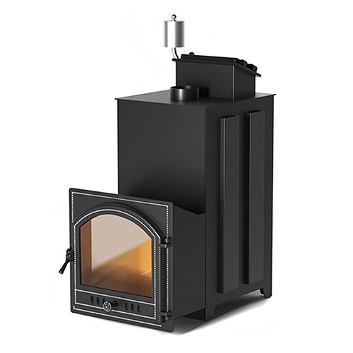 Система позволяет получать мелкодисперсный пар без чрезмерного остывания камней. Для выхода пара в верхней части каменки оборудована дверка. Система регулирования воздушного потока чугунной дверки помогает чётко дозировать количество пара, выходящего из каменки.