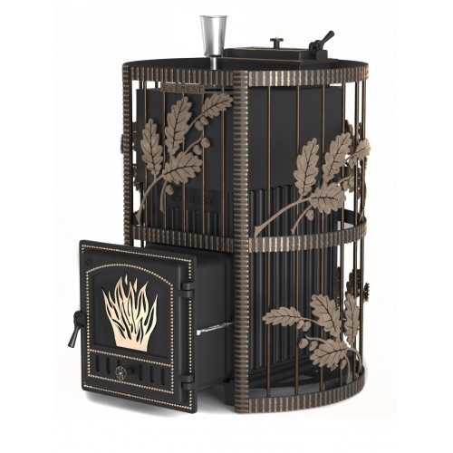 Наполнение сетки камнями помогает защитить парильщиков от жёсткого инфракрасного излучения, возникающего при нагреве металлической поверхности печи. Сетка вмещает в себя 240-280 килограммов камней крупной и средней фракции. Закрытая каменка – приспособление на банной печи, предназначенное для получения большого количества мелкодисперсного пара. Конструктивно закрытая каменка представляет собой сварной стальной короб, который размещается на верхней части печи и заполняется камнями. В таком объёме каменки умещается до 45 килограммов камней крупной и средней фракции. Камни в закрытой каменке нагреваются снизу, и поэтому для получения большого количества пара идеальной будет подача жидкости в середину и на нижнюю часть камней. Такая подача обеспечивается за счёт парогенератора, воронка которого расположена рядом с дверкой. Заливающаяся в воронку вода через отверстия в трубке попадает вовнутрь массива максимально разогретых камней. Быстрое испарение воды с этих камней и образует значительное количество мелкодисперсного пара. Кроме парогенератора для получения пара можно воспользоваться дверкой и подавать воду через неё на верхние слои каменной закладки. В этом случае на выходе будет получаться обычный пар, только в несколько большем количестве. Пар в парильное помещение можно выпускать как через сдвижную створку, размещённую в дверке, так и с помощью открытия самой дверки.