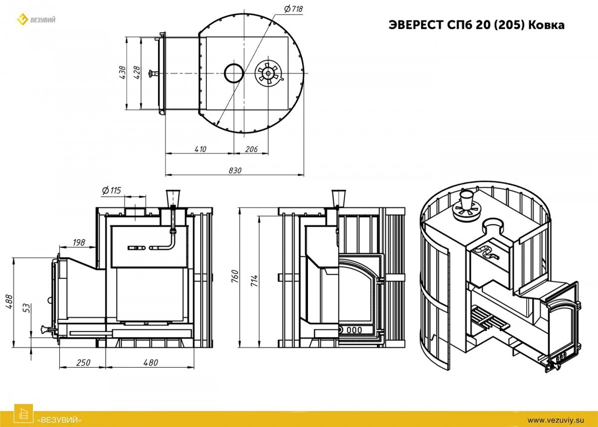 Печь для бани Везувий Эверест СПб 20 (205) Ковка с закрытой каменкой для парной объёмом 18-24 м3