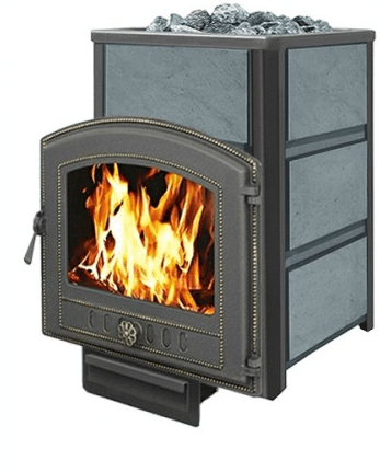 Печь для бани Везувий Легенда 16 (224) талькохлорит укомплектована чугунной каминной самоохлаждаемой дверцей Везувий 224 с большим жаропрочным стеклом «SHOT ROBAX», с оборудованной системой самоочистки, что позволяет визуально контролировать горение и любоваться видом живого огня. Конвекционно–вентилируемая облицовка, изготовленная из экологически чистой горной породы, обладает большой теплоёмкостью, что позволяет камню в короткие сроки нагреваться и максимально долго удерживать стабильную температуру в парильном помещении, а также гасить жёсткое инфракрасное излучение. Камень обладает исключительными лечебными свойствами: помогает при головных болях, при нестабильном артериальном давлении, при простудных заболеваниях, воспалительных процессах в почках и пищеварительной системе, снимает повышенную возбудимость и нервозность, сглаживает эмоциональные всплески.