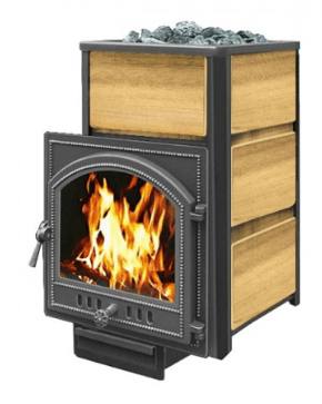 Печь для бани Везувий Легенда 28 (205) талькохлорит укомплектована чугунной каминной самоохлаждаемой дверцей Везувий 205 с большим жаропрочным стеклом «SHOT ROBAX», что позволяет визуально контролировать горение и любоваться видом живого огня. Конвекционно–вентилируемая облицовка, изготовленная из экологически чистого песчаника, который обладает большой теплоёмкостью, что позволяет ему в короткие сроки нагреваться и максимально долго удерживать стабильную температуру в парильном помещении, а также гасить жёсткое инфракрасное излучение.