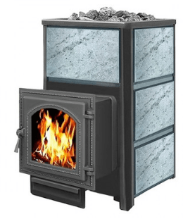 Печь для бани Везувий Легенда 28 (270) талькохлорит укомплектована чугунной каминной самоохлаждаемой дверцей Везувий 270 с большим жаропрочным стеклом «SHOT ROBAX», что позволяет визуально контролировать горение и любоваться видом живого огня. Конвекционно–вентилируемая облицовка, изготовленная из экологически чистой горной породы, которая обладает большой теплоёмкостью, что позволяет камню в короткие сроки нагреваться и максимально долго удерживать стабильную температуру в парильном помещении, а также гасить жёсткое инфракрасное излучение. Камень обладает исключительными лечебными свойствами: помогает при головных болях, при нестабильном артериальном давлении, при простудных заболеваниях, воспалительных процессах в почках и пищеварительной системе, снимает повышенную возбудимость и нервозность, сглаживает эмоциональные всплески.