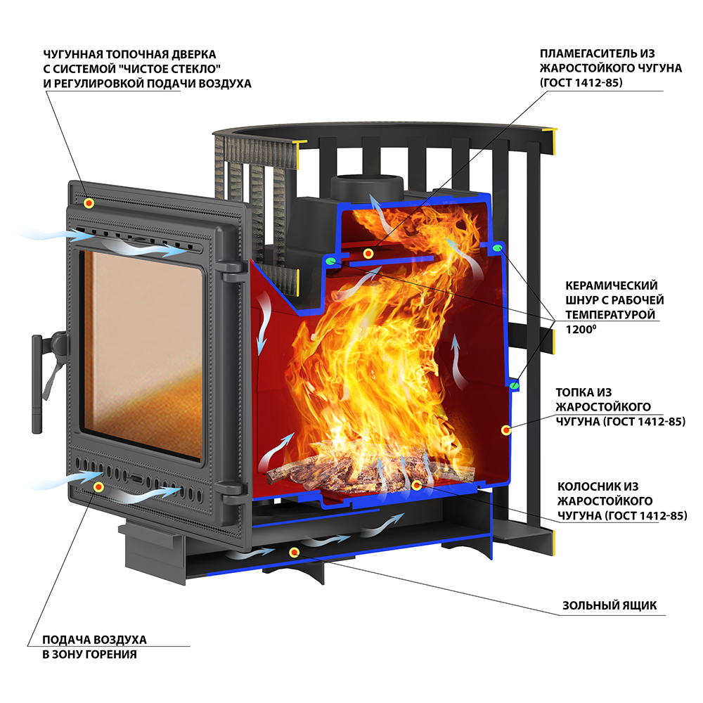 | Материал дверки | жаростойкий чугун (ГОСТ 1412-85) |