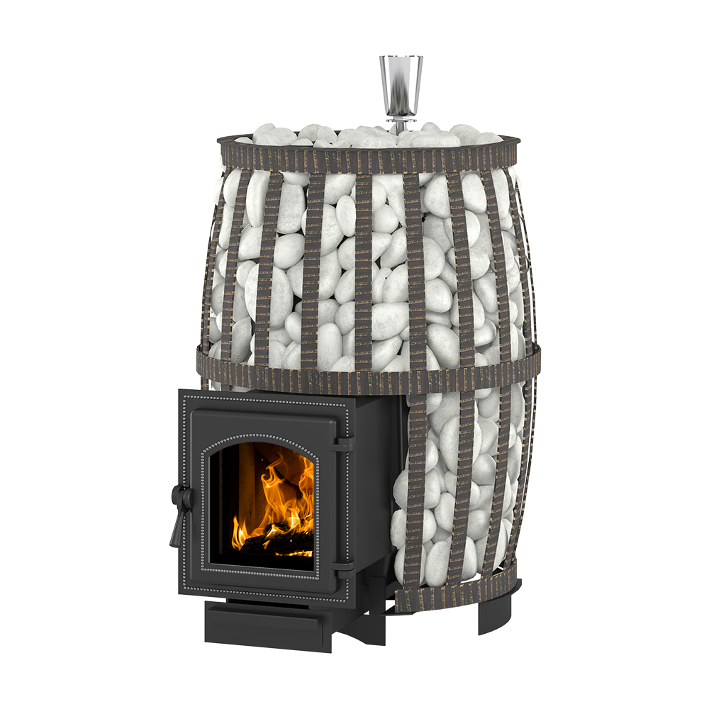 Печь для бани Везувий Легенда Русский Пар Ковка 18 (270) укомплектована чугунной герметичной дверцей Везувий 270 с жаростойким стеклом "SHOT ROBAX". Все элементы топки отлиты из чугуна и соединены между собой с помощью болтового соединения через термостойкий шнур и герметик, а закрытая каменка изготовлена из жаростойкой высоколегированной 4 мм нержавеющей стали.