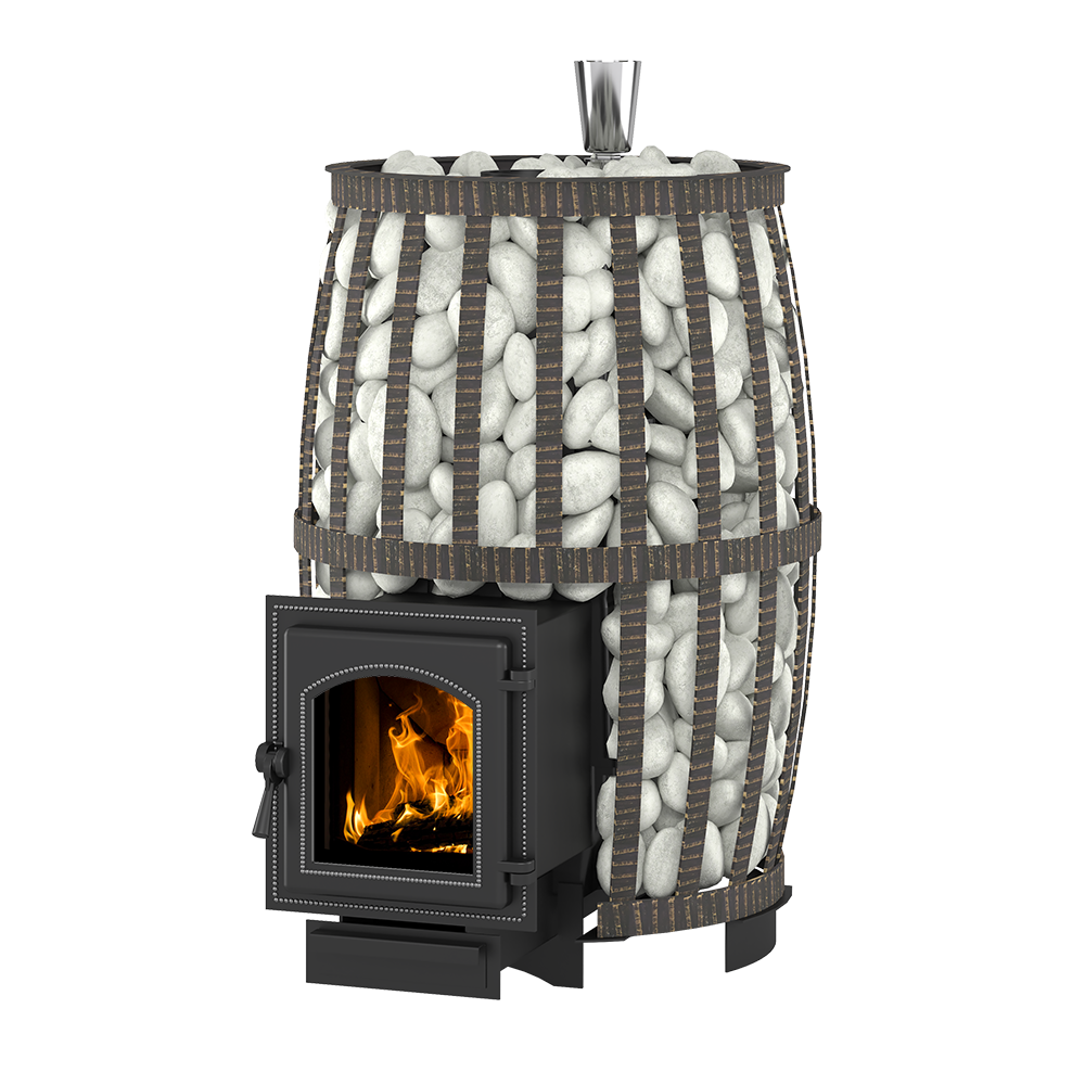 Печь для бани Везувий Легенда Русский Пар Ковка 24 (270) укомплектована чугунной герметичной дверцей Везувий 270 с жаростойким стеклом "SHOT ROBAX". Все элементы топки отлиты из чугуна и соединены между собой с помощью болтового соединения через термостойкий шнур и герметик, а закрытая каменка изготовлена из жаростойкой высоколегированной 4 мм нержавеющей стали.