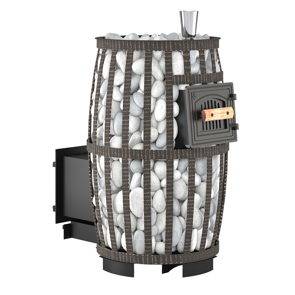 Печь для бани Везувий Легенда Русский Пар Ковка 30 (270) укомплектована чугунной герметичной дверцей Везувий 270 с жаростойким стеклом "SHOT ROBAX". Все элементы топки отлиты из чугуна и соединены между собой с помощью болтового соединения через термостойкий шнур и герметик, а закрытая каменка изготовлена из жаростойкой высоколегированной 4 мм нержавеющей стали.