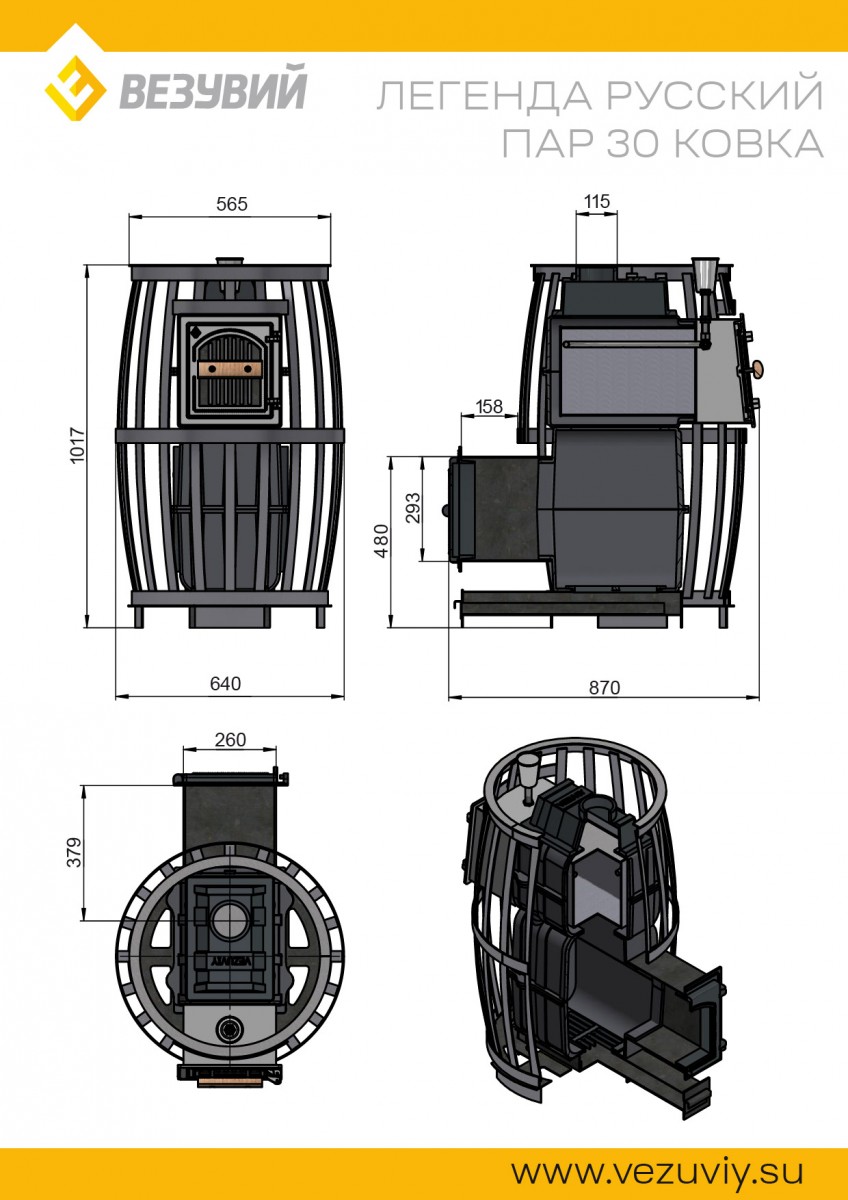 Печь для бани Везувий Легенда Русский Пар Ковка 30 (270) для парной объёмом до 30 м3