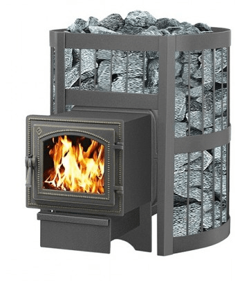 Печь для бани Везувий Легенда Стандарт 12 (260) - чугунная печь для бани со стальной сеткой для камней. Топка печи выполнена из двух отлитых частей, стянута болтами, для герметичности соединения применяется уплотнительный шнур с рабочей температурой в 1200°C. В топке предусмотрен съемный чугунный зуб-отбойник для поворота пламени и увеличения КПД печи. Съемный отбойник пламени облегчает периодическую чистку печи от сажи. Снаружи на печь одевается стальная сетка в которую закладываются камни. Большая масса камней позволяет надолго сохранять тепло и защищает от сильного инфракрасного излучения идущего от наружной стенки топки. Печь протапливается из соседнего с парной помещения бани (выносная топка).
