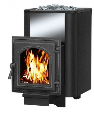 Печь для бани Везувий Русичъ Антрацит, работающая на твердом топливе, предназначена для нагрева воздуха и воды, а также для получения влажного пара в русской бане или сухого пара в сауне (финской бане). Глубокая невентилируемая камера каменка печи прогревается открытым вторичным пламенем с пяти сторон и имеет замыкающую к верху пирамидальную форму, фокусирующую тепловое излучение от стенок каменки в ее центральной части для максимального прогрева камней. Большая масса камней, закладываемых в каменку печи, обеспечивает стабильность температуры в парилке и является мощным парогенератором. Поверхности нагрева печи охвачены наружным кожухом-конвектором, значительно ускоряющим нагревание воздуха в парилке за счет образуемого им мощного конвекционного потока.