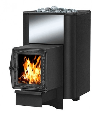 Печь для бани Везувий Русичъ Антрацит, работающая на твердом топливе, предназначена для нагрева воздуха и воды, а также для получения влажного пара в русской бане или сухого пара в сауне (финской бане). Глубокая невентилируемая камера каменка печи прогревается открытым вторичным пламенем с пяти сторон и имеет замыкающую к верху пирамидальную форму, фокусирующую тепловое излучение от стенок каменки в ее центральной части для максимального прогрева камней. Большая масса камней, закладываемых в каменку печи, обеспечивает стабильность температуры в парилке и является мощным парогенератором. Поверхности нагрева печи охвачены наружным кожухом-конвектором, значительно ускоряющим нагревание воздуха в парилке за счет образуемого им мощного конвекционного потока.
