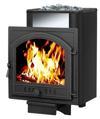 Печь для бани Везувий Русичъ Антрацит, работающая на твердом топливе, предназначена для нагрева воздуха и воды, а также для получения влажного пара в русской бане или сухого пара в сауне (финской бане). Глубокая невентилируемая камера каменка печи прогревается открытым вторичным пламенем с пяти сторон и имеет замыкающую к верху пирамидальную форму, фокусирующую тепловое излучение от стенок каменки в ее центральной части для максимального прогрева камней. Большая масса камней, закладываемых в каменку печи, обеспечивает стабильность температуры в парилке и является мощным парогенератором. Поверхности нагрева печи охвачены наружным кожухом-конвектором, значительно ускоряющим нагревание воздуха в парилке за счет образуемого им мощного конвекционного потока.