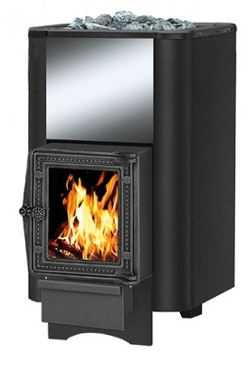 Печь для бани Везувий Русичъ Антрацит, работающая на твердом топливе, предназначена для нагрева воздуха и воды, а также для получения влажного пара в русской бане или сухого пара в сауне (финской бане). Глубокая невентилируемая камера каменка печи прогревается открытым вторичным пламенем с пяти сторон и имеет замыкающую к верху пирамидальную форму, фокусирующую тепловое излучение от стенок каменки в ее центральной части для максимального прогрева камней. Большая масса камней, закладываемых в каменку печи, обеспечивает стабильность температуры в парилке и является мощным парогенератором. Поверхности нагрева печи охвачены наружным кожухом-конвектором, значительно ускоряющим нагревание воздуха в парилке за счет образуемого им мощного конвекционного потока.