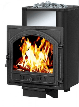 Печь для бани Везувий Русичъ Антрацит, работающая на твердом топливе, предназначена для нагрева воздуха и воды, а также для получения влажного пара в русской бане или сухого пара в сауне (финской бане). Глубокая невентилируемая камера каменка печи прогревается открытым вторичным пламенем с пяти сторон и имеет замыкающую к верху пирамидальную форму, фокусирующую тепловое излучение от стенок каменки в ее центральной части для максимального прогрева камней. Большая масса камней, закладываемых в каменку печи, обеспечивает стабильность температуры в парилке и является мощным парогенератором. Поверхности нагрева печи охвачены наружным кожухом-конвектором, значительно ускоряющим нагревание воздуха в парилке за счет образуемого им мощного конвекционного потока.
