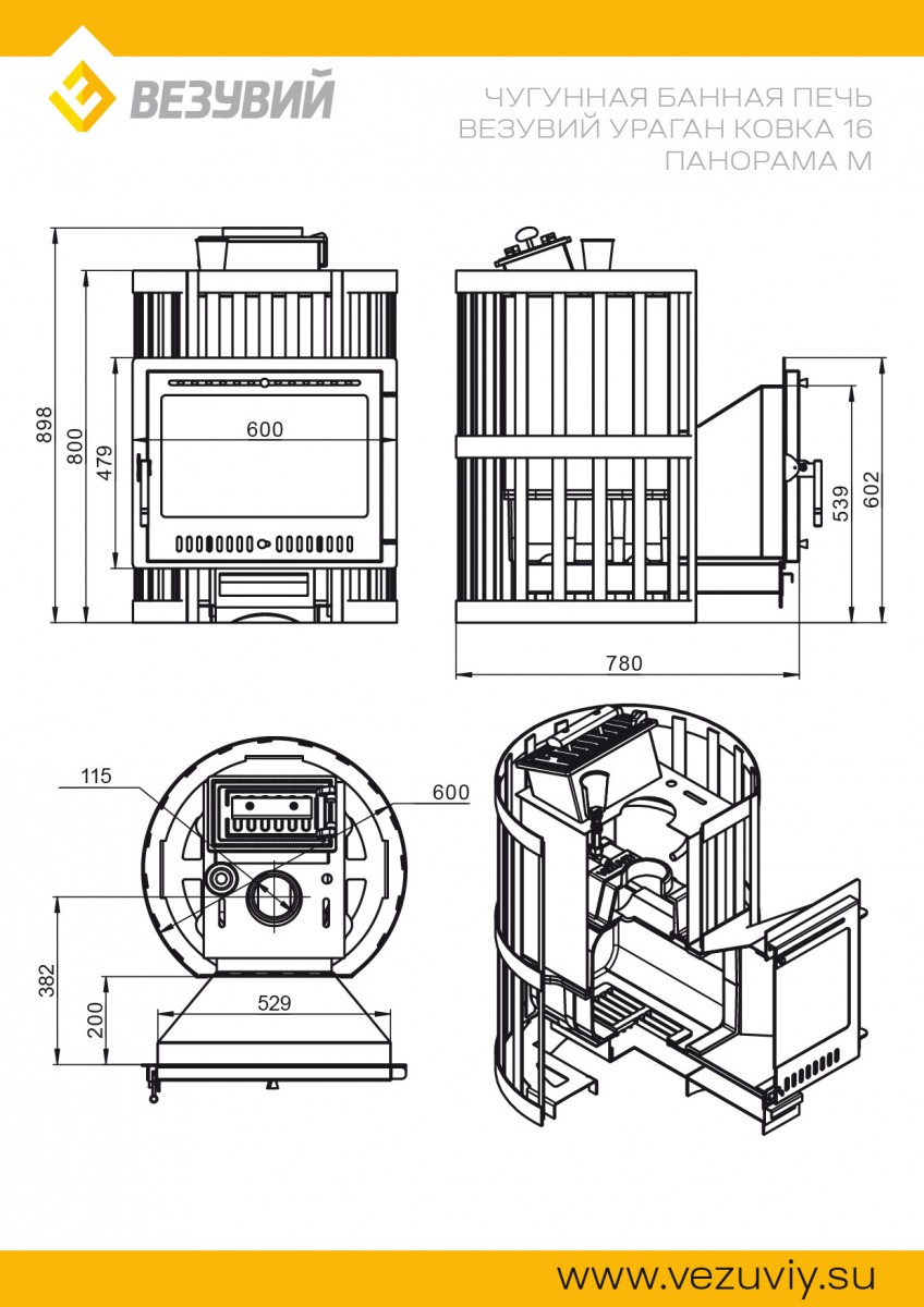 Печь для бани Везувий Ураган Ковка 16 Панорама "М"
