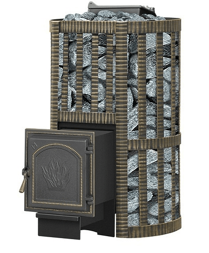 Печь для бани Везувий Ураган Ковка 22 (271) укомплектована чугунной герметичной дверцей Везувий 271. Закрытая каменка изготовлена из стали и вмещает в себя не менее 60кг камней. Конвекционно-вентилируемый кожух "Ковка" изготовлен из металлической текстурированной полосы покрашенной термостойкой краской и покрытая патиной «Бронза». В конструкции данной печи предусмотрен топочный тоннель, при помощи которого печь топится из соседнего помещения, смежного с парильным.