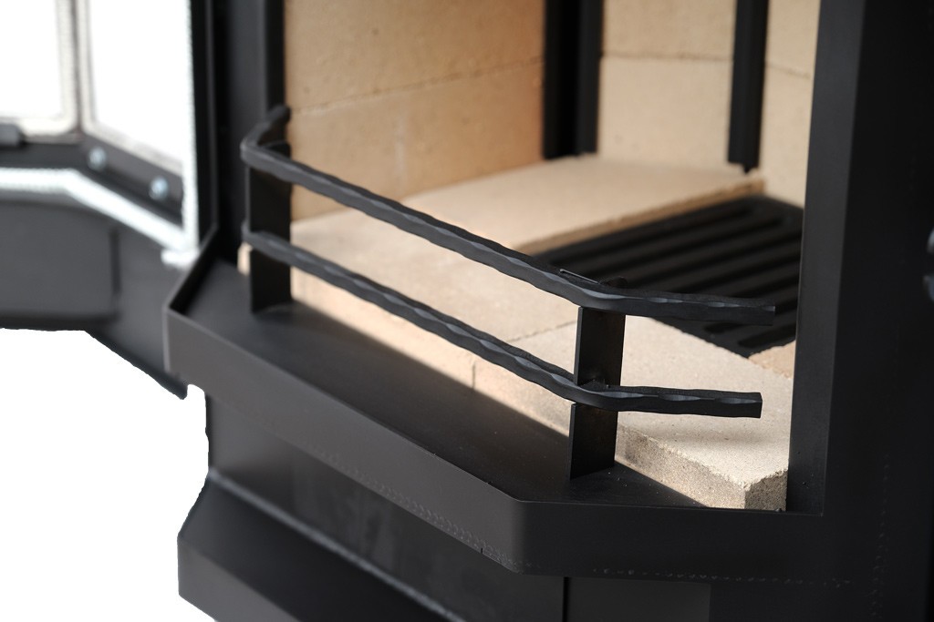 Система ограждения для дров позволяет компактно размещать поленья внутри топки, защищая тем самым панорамное стекло от механических воздействий. Доступная цена ниже среднерыночных показателей на 30% делает печи – камины привлекательными для покупателей.