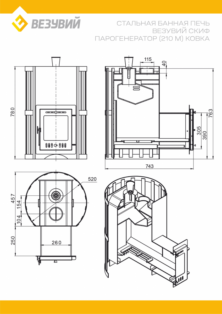 Стальная банная печь ВЕЗУВИЙ Скиф Парогенератор Ковка (210) "М" предназначена для прогрева парного помещения в бане и поддержания необходимой температуры во время парения. Печь СКИФ оборудована открытой каменкой, закладываемой камнями для бани (приобретаются отдельно).
