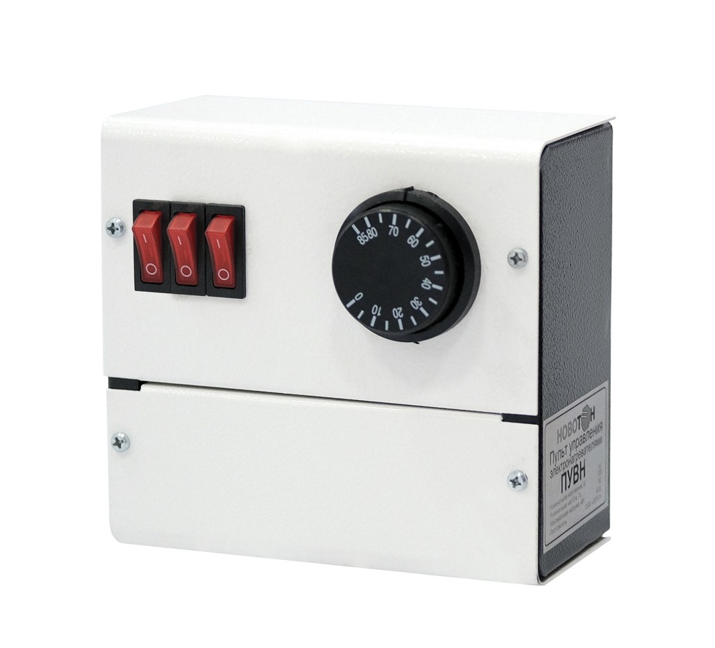 Пульты управления электрическим нагревательным элементом ("ПУЭ-10/02") предназначены для управления работой электрических нагревателей (ТЭНов), в котлах, где они установлены. Использование данного вида электрического оборудования обусловлено необходимостью поддержания установленного температурного режима теплоносителя в период между топкой котла и межсезонье. Пульт управления позволяет задавать необходимую комфортную температуру теплоносителя в котле, делая процесс установки комфортным и быстрым. Представлен в модификациях оранжевой и бежевой цветовых гамм.