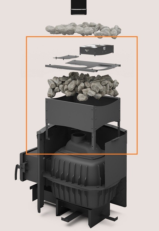 Закрытая каменка поставляется в разобранном виде.