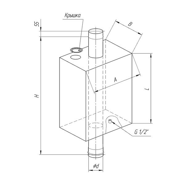 Бак Ferrum Комфорт прямоугольный на трубе 73 л выполнен из высококачественной сертифицированной нержавеющий стали. Диаметр трубы-основания равен 115 мм. Бак за короткое время нагреет воду.