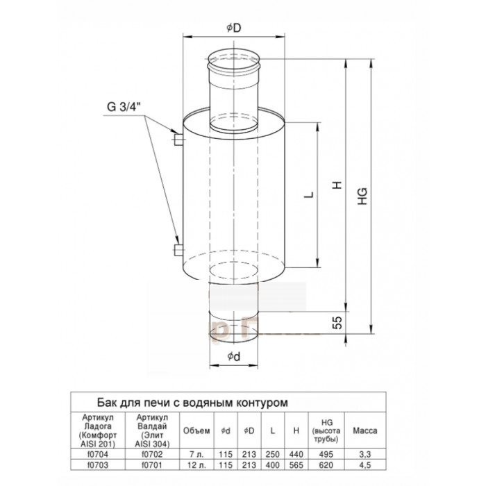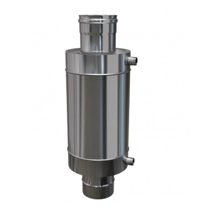 Бак-теплообменник Феррум Валдай (дымоход с водяным контуром) предназначен для использования совместно с банными печами и отопительными котлами для подогрева воды и последующего ее использования в помывочных и душевых помещениях. Конструкция состоит из герметичного корпуса, выполненного из нержавеющей стали AISI 304. Важно! Использование бака-теплообменника возможно только в сочетании с накопительным баком и теплогенерирующим аппаратом, имеющим дымоотводящий канал.