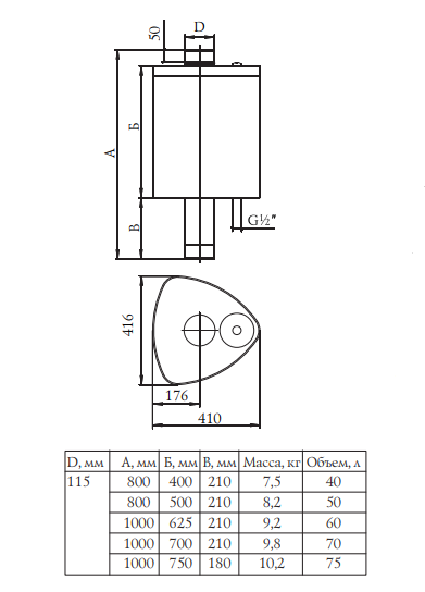 Бак Термофор БАЙКАЛ 50 л самоварного типа Ø115, G1/2 предназначен для хранения и нагрева воды непосредственно за счёт тепла дымоходного канала. Бак имеет оригинальную форму треугольника Рёло, которая обеспечивает максимально эффективный высокоскоростной нагрев воды, а также существенно экономит пространство в парной.