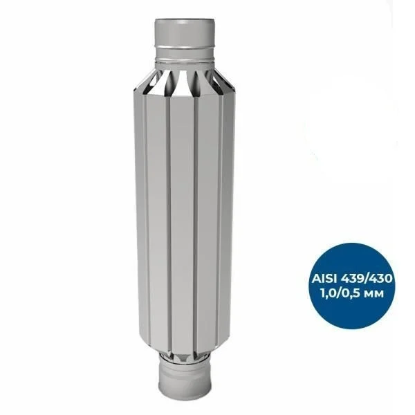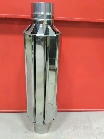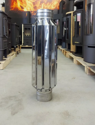 Конвектор «Ромашка» обеспечит ускоренный нагрев помещения и служит защитой от избыточного, жесткого инфракрасного излучения, исходящего от дымовой трубы. Конвектор имеет высоту 800 мм, благодаря чему конвектор заменяет первый отрезок дымовой трубы. Внутреняя часть ковектора произведена из нержавеющей стали марки AISI 439 толщиной 1 мм., что обеспечивает срок службы изделия в среднем 10 лет. Ребра конвектора изготовлены из нерж. стали марки AISI 430.