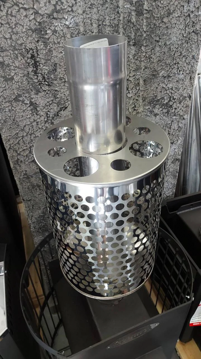 Натрубная каменка от UMK PRO применяется как стартовый элемент дымохода банной печи. Служит для экранирования жесткого инфракрасного излучения от первой трубы дымохода, для дополнительной теплоаккумуляции, а также для снятия пара с раскаленных камней. Изготовлена из жаростойкой нержавеющей стали марки AISI 439 с добавлением титана и с толщиной 1мм.