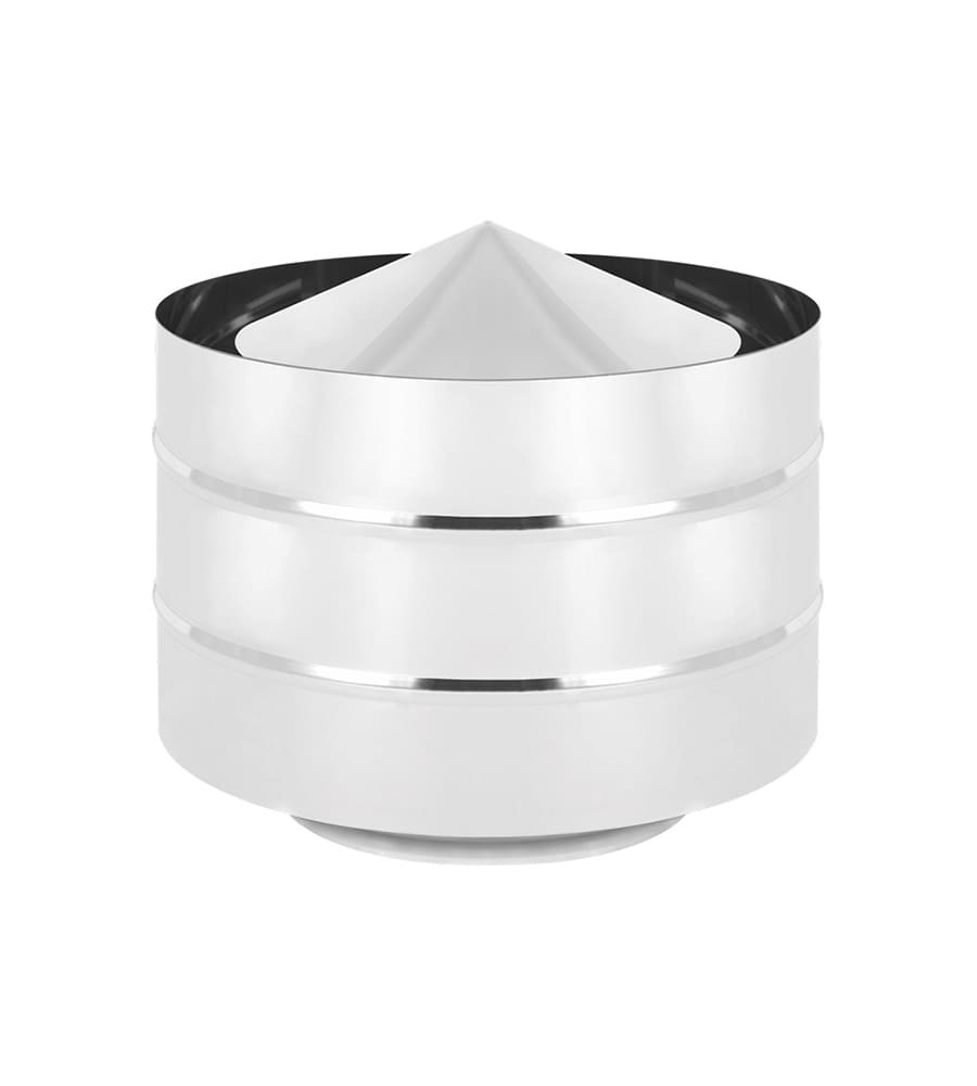 Дефлектор (AISI 304 0,8/430 0,5) монтируется на конце наружной трубы дымохода и представляет собой вытяжное устройство для удаления загрязненного воздуха из помещений. Действие дефлектора основано на использовании энергии обдувающего его потока воздуха. Дефлектор необходимо устанавливать так, чтобы он обдувался ветром при любых его направлениях; устье трубы должно быть защищено от атмосферных осадков. Изготовлен дефлектор из нержавеющей стали толщиной 0,5 мм и 1 мм.