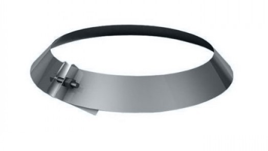 Фартук изготовлен из нержавеющей стали марки AISI 430 толщиной 0,5 мм и имеет разные диаметры. Он герметизирует участок соединения потолочно-проходного узла и трубы дымохода, предотвращая попадание влаги.