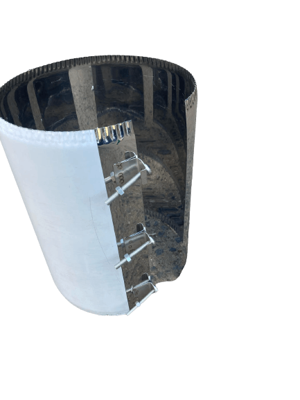 Хомут стяжной d180 мм из нержавеющей стали 430 - для стяжки дымоходных труб. Изготавливается из жарокоррозионностойких марок сталей.
