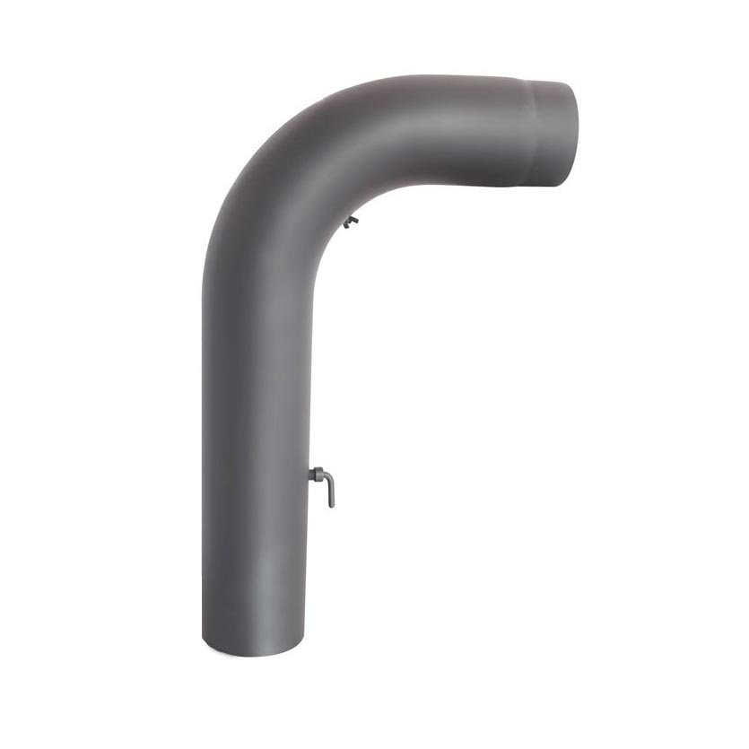 Колено гнутое с ревизией и шибером 90° Darco 2 мм окрашено термостойкой краской Senotherm. Плазменная сварка. Толщина черной листовой стали 2 мм.