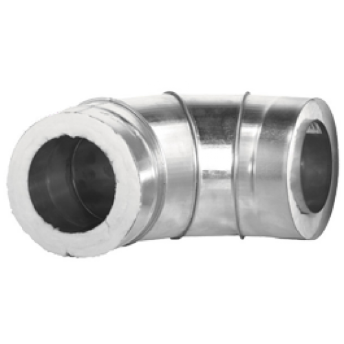 Сэндвич-отвод 90° - используются для смещения оси дымохода, выполненного из двухконтурных элементов. Для систем вентиляции, воздушного отопления и кондиционирования воздуха.