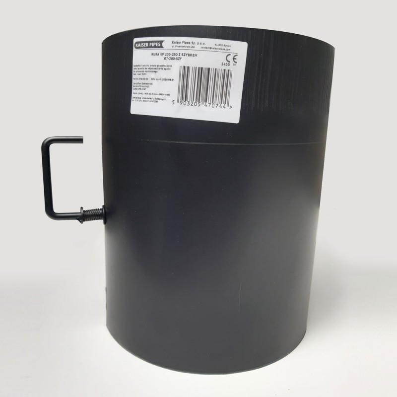 Шибер поворотного типа KAISER PIPES (2мм) - длина: 250 мм, толщина листа 2 мм, рабочая температура: 1000 * C, материал: стальной лист S235 покрыт черной термостойкой краской