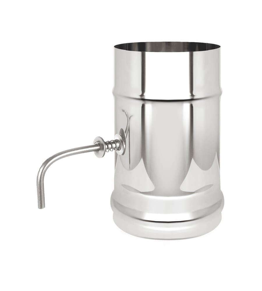 Шибер поворотный дымохода (AISI 304 0,8) - представляет собой пластину, закрепленную на вращающейся оси. Пластина вращается внутри патрубка или дымовой трубы. Основное функциональное назначение: регулировка скорости прохождения дымовых газов и соответственно интенсивности горения в топке. Конструкция заслонки дымохода гарантирует защиту от отравления угарными газами, благодаря наличию канала для движения газов. Установку заслонки осуществляют на ближайшем к отопительному прибору отрезке. Монтаж заслонки осуществляется методом «труба в трубу».