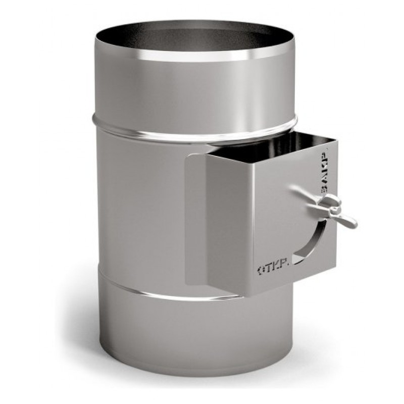Шибер (заслонка поворотная) TMF используется для регулирования тяги путем частичного перекрытия дымового канала. А также в качестве заслонки на неэксплуатируемой печи. Представляет собой трубу со встроенной поворотной заслонкой и выведенной наружу ручкой регулировки. Для удобства использования на шибере имеется фиксатор заслонки. Устанавливается в доступном месте.