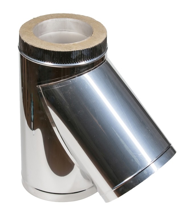 Тройник 2ТР90 – это основной элемент дымоходной системы. Предназначен для соединения дымоотвода с основным каналом дымохода с возможностью ревизии. Стыковочный шов закрыт декоративной лентой из нержавеющей стали. Тройники 45° рекомендуется использовать в сухом режиме, поскольку при замедлении потока газов при крутом повороте возможно активное выпадение конденсата. В нижней части тройников обязательно устанавливается Ревизия 2Р или Конденсатосборник 2КНД. По конструктивным особенностям тройник 2ТР45 является утепленным.