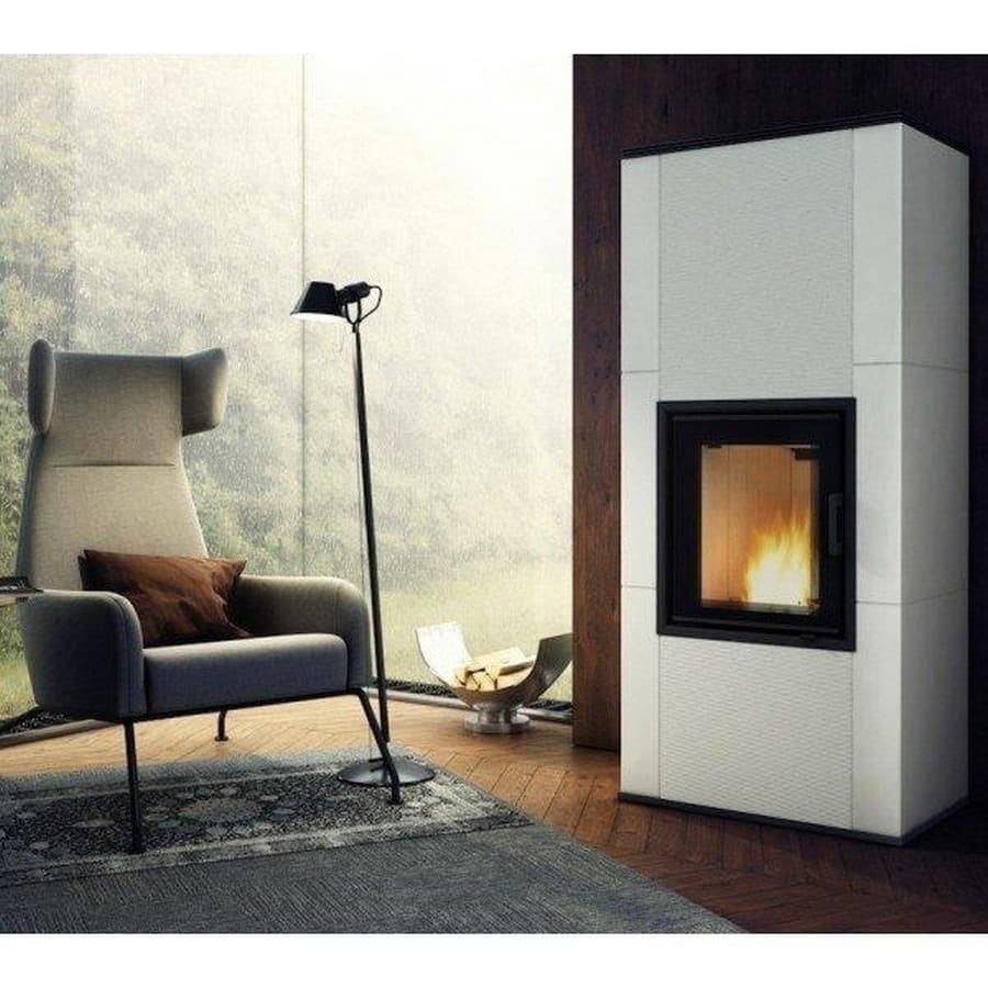 Кафельная печь камин Kratki NADIA KAFEL B RYFEL покрытая плиткой, представляет новый дизайн, который подойдет как стильным, так и современным интерьерам.Камера сгорания выложена материалом Acumotte, который идеально контрастирует с печью, придавая ей современный вид. Полное сгорание дров в пыль благодаря двум отражателям, которые увеличивают траекторию дымовых газов. Этот процесс повышает эффективность сжигания и гарантирует лучшее использование энергии. Он также минимизирует выброс вредных веществ в атмосферу.Первичный воздух подается в топку благодаря встроенному внешнему воздухозаборнику D=125 мм. Топка имеет крышку на задней стенке и отверстие в основании. Это решение предотвращает неправильное использование. Весь механизм работает спокойно и бесперебойно. Максимальное использование тепла благодаря ребрам на корпусе топки. Корпус и дверца устойчивы к высоким температурам благодаря использованию высококачественной стали.