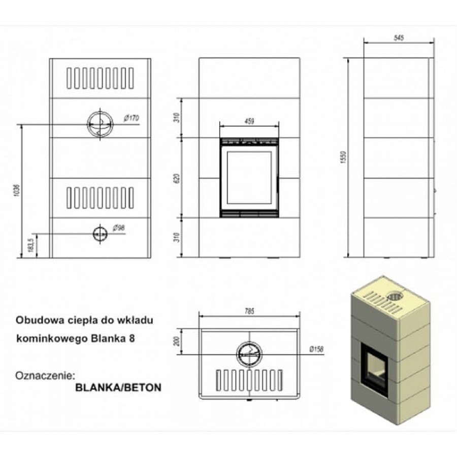 Печь BLANKA/KAFEL/K – новая печь от известного производителя Kratki, выполненная в стиле хай-тек. Мощность составляет 8 kW. Внешняя облицовка выполнена из композитного материала на основе армированного бетона, который вы сможете покрасить либо обклеить плиткой в зависимости от ваших предпочтений. Вес данной печи составляет 300кг, что позволяет устанавливать её без дополнительного фундамента. Футеровка топки выполнена из материала Accumote, который является ноу-хау польского производителя. Так же камин имеет функцию притока воздуха извне.